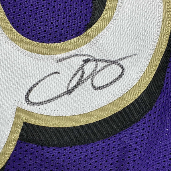 Framed Autographed/Signed Odell Beckham Jr. 33x42 Purple Jersey Beckett BAS COA The item is professionally framed and matted with two 5x7 photos, measures 35 inches by 39 inches and is ready to be hung in your man cave! Photo and matting requests can be made.
