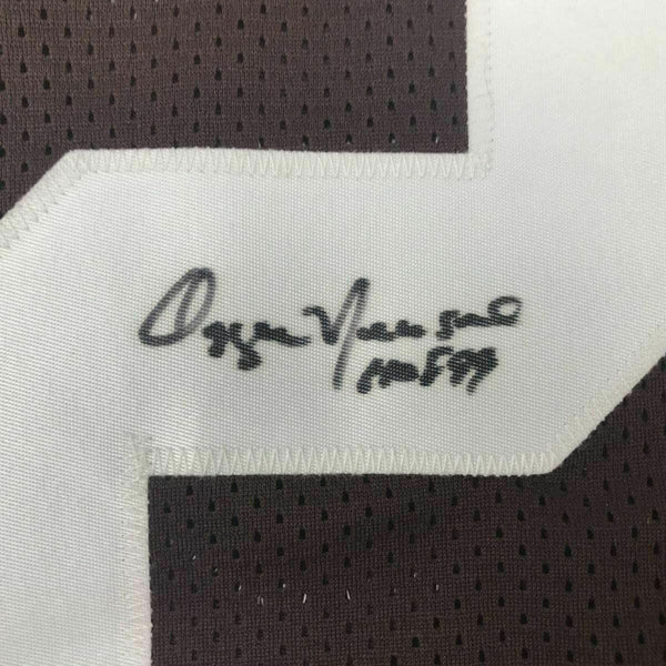 FRAMED Autographed/Signed OZZIE NEWSOME HOF 33x42 Cleveland Brown Jersey JSA COA The item is professionally framed and matted with two 8x10 photos, measures 33x42 inches and is ready to be hung in your man cave! NOTE: COA card will be mounted on the back of the frame, not inside it on top of the jersey as seen in the picture.