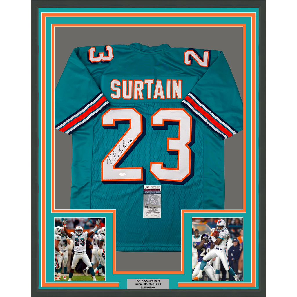 Framed Autographed/Signed Patrick Surtain 33x42 Miami Teal Jersey JSA COA