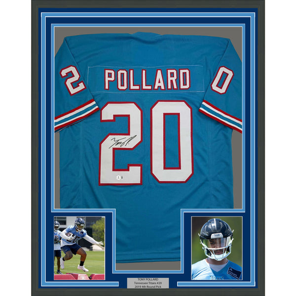 Framed Autographed/Signed Tony Pollard 35x39 Tennessee Retro Jersey Beckett COA The item is professionally framed and matted with two 5x7 photos, measures 35x39 inches and is ready to be hung in your man cave! Photo and matting requests can be made.