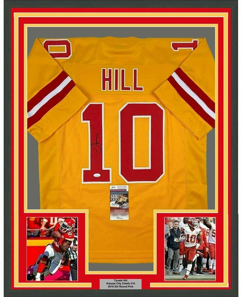 Framed Autographed/Signed Tyreek Hill 33x42 Kansas City Yellow Jersey JSA COA