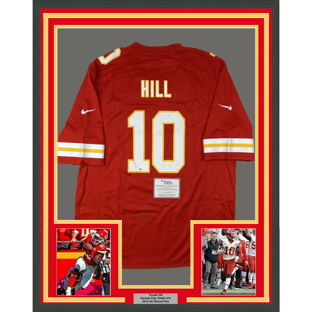 FRAMED Autographed TYREEK HILL 33x42 Kansas City Chiefs Red Jersey Fanatics COA