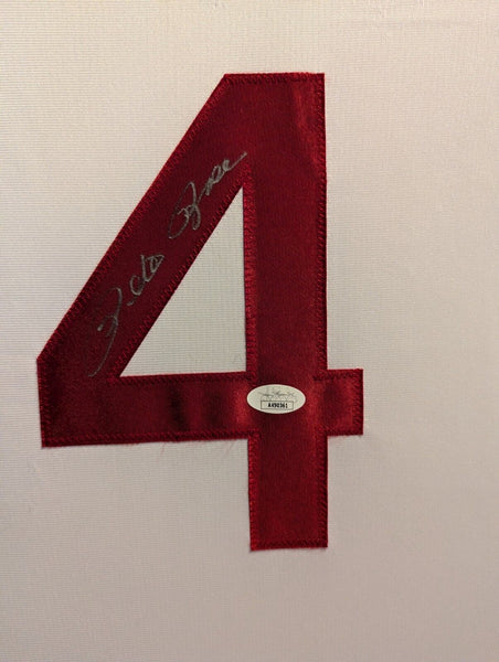 FRAMED CINCINNATI REDS ROSE AUTOGRAPHED SIGNED STAT JERSEY JSA COA