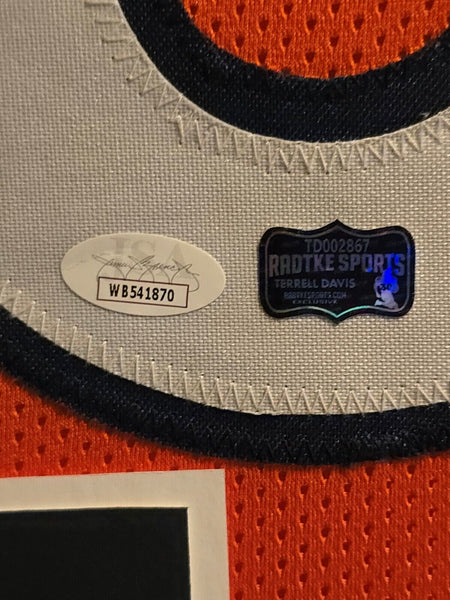 FRAMED DENVER BRONCOS TERRELL DAVIS AUTOGRAPHED SIGNED JERSEY JSA COA