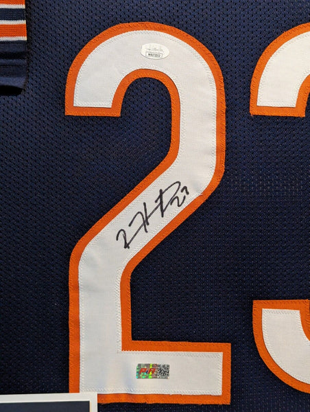 Custom Framed Devin Hester hand signed Chicago Bears style custom jersey.JSA Hologram and COAThe authentication is from JSA. This signature is authenticated by a representative of JSA! 100% AUTHENTIC!!! The jersey has fully stitched numbers on the front and back. It is a great item and a must for all great sports fans!Stock photos are used for auctions. Will receive equal quality.This item is professionally framed, it measures 32"x40" inside , 42"x34" outside , using UV protective Acrylic glass for safe keeping and safe transport, team color matting, black moulding and hanging hooks on the back. All additional items in frame seen in pictures included. 100% ready to hang in your fan cave.