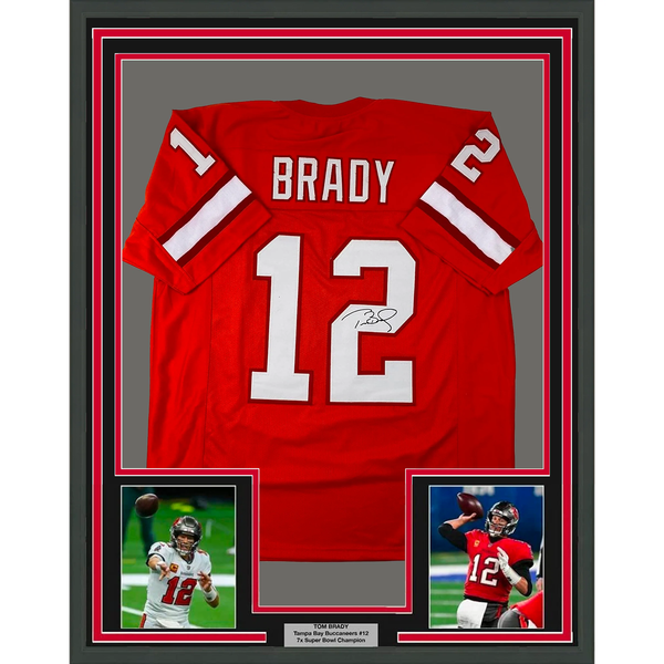 Framed Facsimile Autographed Tom Brady 33x42 Tampa Orange Throwback Laser Jersey
