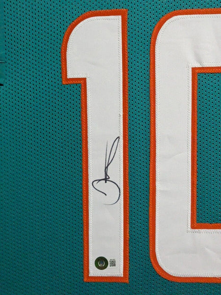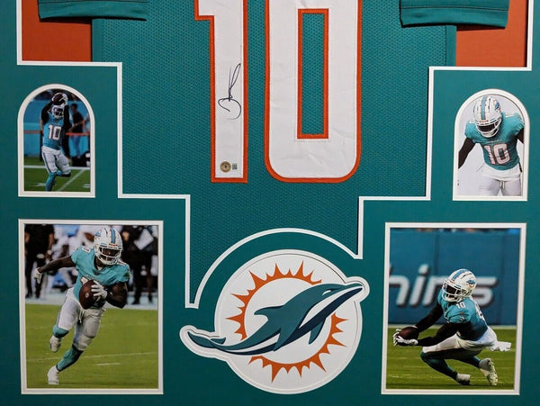 FRAMED MIAMI DOLPHINS TYREEK HILL AUTOGRAPHED SIGNED JERSEY BECKETT HOLO