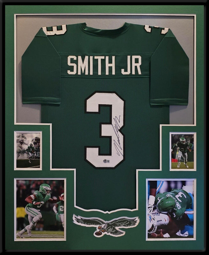 FRAMED PHILADELPHIA EAGLES NOLAN SMITH JR AUTOGRAPHED SIGNED JERSEY BECKETT HOLO