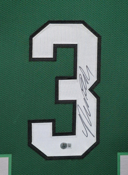 Custom Framed Nolan Smith Jr hand signed Philadelphia Eagles style custom jersey.Beckett Hologram The authentication is from Beckett. This signature is authenticated a representative of Beckett! 100% AUTHENTIC!!! The jersey has fully stitched numbers on the front and back. It is a great item and a must for all great sports fans! This item is professionally framed, it measures 32"x40" inside , 42"x34" outside , using UV protective Acrylic glass for safe keeping and safe transport, team color matting, black moulding and hanging hooks on the back. All additional items in frame seen in pictures included. 100% ready to hang in your fan cave.