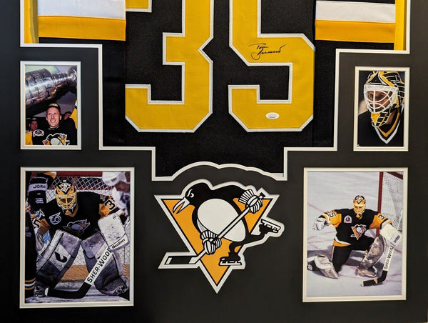 FRAMED PITTSBURGH PENGUINS TOM BARRASSO AUTOGRAPHED SIGNED JERSEY JSA COA