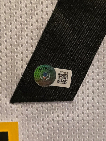 Custom Framed TJ Watt signed Pittsburgh Steelers style custom jersey.Beckett HologramThe authentication is from Beckett. This signature is WITNESSED by a representative of Beckett! 100% AUTHENTIC!!! The jersey has fully stitched numbers on the front and back. It is a great item and a must for all great sports fans!This item is professionally framed, it measures 32"x40" inside , 42"x34" outside , using UV protective Acrylic glass for safe keeping and safe transport, team color matting, black moulding and hanging hooks on the back. All additional items in frame seen in pictures included. 100% ready to hang in your fan cave.