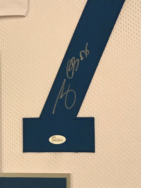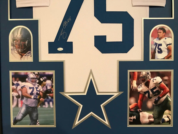 Custom Framed Tony Casillas hand signed Dallas Cowboys jersey.JSA Hologram and COA(#WPP029814)The authentication is from JSA. This signature is not authenticated by opinion but it is WITNESSED by a representative of JSA! 100% AUTHENTIC!!! The jersey has fully stitched numbers on the front and back. It is a great item and a must for all great sports fans!This item is professionally framed, it measures 32"x40" inside , 42"x34" outside , using UV protective Acrylic glass for safe keeping and safe transport, team color matting, black moulding and hanging hooks on the back. All additional items in frame seen in pictures included. 100% ready to hang in your fan cave.