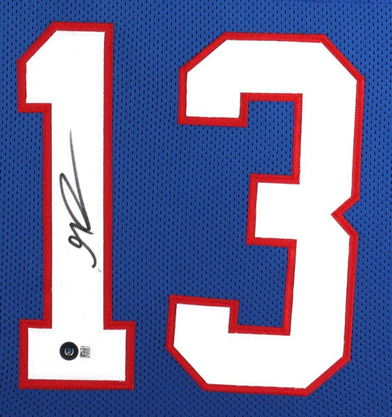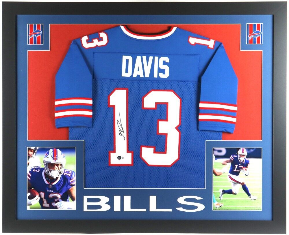 Custom framed display measures 35" x 43" in size and features a jersey hand-signed by Gabe Davis.The lot / autograph(s) includes an official Beckett Authentication Services serially numbered hologram for authenticity purposes. The signing of this item was witnessed by Beckett.Authentication: Beckett Hologram