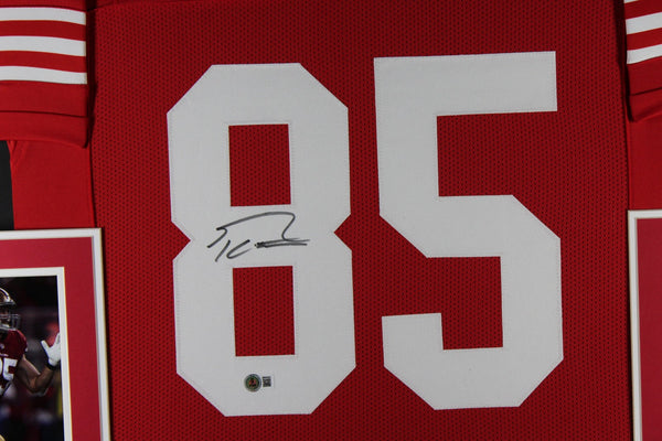 The number in the listing title is just an inventory sku for our records and is not the authentication number. The item pictured is a stock photo unless otherwise noted. This is a Pro Style Size XL Red Framed Jersey that was personally autographed by George Kittle. Includes a certificate of authenticity from Beckett Authentication Services (BAS) and Denver Autographs.The size of this jersey is 42"x32".FREE SHIPPING within the USA on orders over $10!