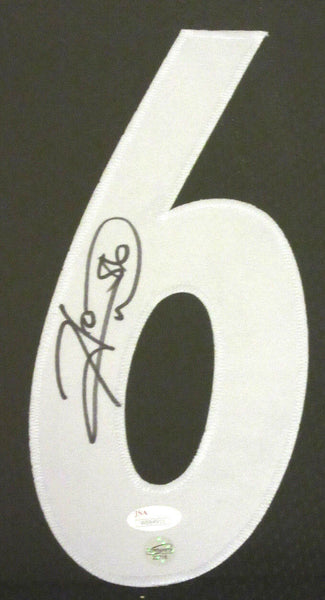 Custom framed display measures 35" x 43" in size. Features a jersey which has been hand-signed in black felt-tip pen by Hines Ward. Includes an official James Spence Authentication (JSA) hologram and matching COA for authenticity purposes. The signing of this item was witnessed by JSA.Authentication: JSA COA