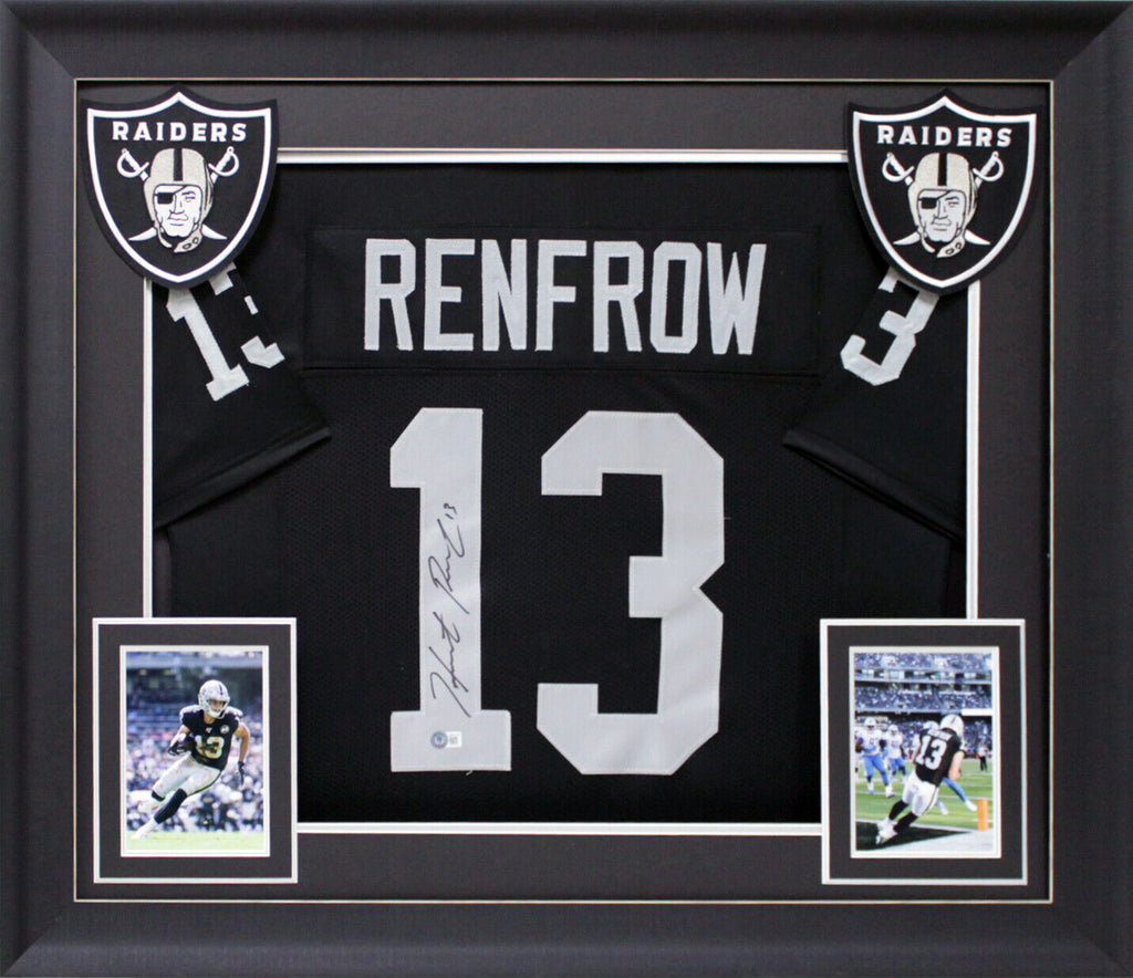 This Autographed Black Pro Style Framed Jersey has been Personally Signed by Hunter Renfrow of the Las Vegas Raiders. This item is 100% Authentic to include a hologram by Beckett Authentication Services. This item may come with the new Beckett Authentication hologram that has a scannable QR code rather than the traditional COA. If you would like to have a COA, you are welcome to reach out to Beckett for a printed certification once you receive your item. This is a BAS Witnessed Protection Program item which means a Beckett Authentication Service representative was present when this item was being signed. We have multiples of this same item. While the photographs are representative of this item, the size, placement and strength of the signature may vary. Each item is hand signed, therefore, each autograph is unique. This item has been professionally framed to overall dimensions of approximately 32 x 37 inches. This is a X-Large sized, non-branded, custom-stitched Framed Jersey. This jersey will be framed to order, it will take approximately 3-4 business days from purchase date for it to ship.