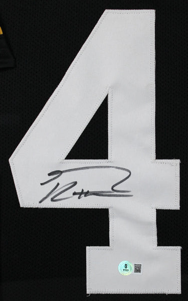 This Autographed Black Pro Style Framed Jersey has been Personally Signed by George Kittle of the Iowa Hawkeyes. This item is 100% Authentic to include a hologram by Beckett Authentication Services. This item will come with the new Beckett Authentication hologram that has a scannable QR code rather than the traditional COA. If you would like to have a COA, you are welcome to reach out to Beckett for a printed certification once you receive your item. This is a BAS Witnessed Protection Program item which means a Beckett Authentication Service representative was present when this item was being signed. We conducted an autograph signing with George Kittle where multiples of the same item were signed. While the photographs are representative of this item, the size, placement and strength of the signature may vary. Each item is hand signed, therefore, each autograph is unique. This item can be verified through BAS Witnessed. This item has been professionally framed to overall dimensions of approximately 32 x 37 inches. This is a X-Large sized, non-branded, custom-stitched Framed Jersey. This jersey will be framed to order, it will take 3-4 days from purchase date for it to ship.