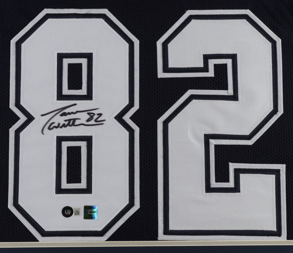 Custom frame measures approximately 35" x 43" in size and features a jersey that has been hand-signed by Jason Witten (Dallas Cowboys).The lot / autograph(s) includes an official Beckett Authentication Services serially-numbered hologram and QR Code card as well as an official Jason Witten player hologram for authenticity purposes. The signing of this item was witnessed by Beckett.Authentication: Beckett Hologram & QR Code card & Witten Hologram