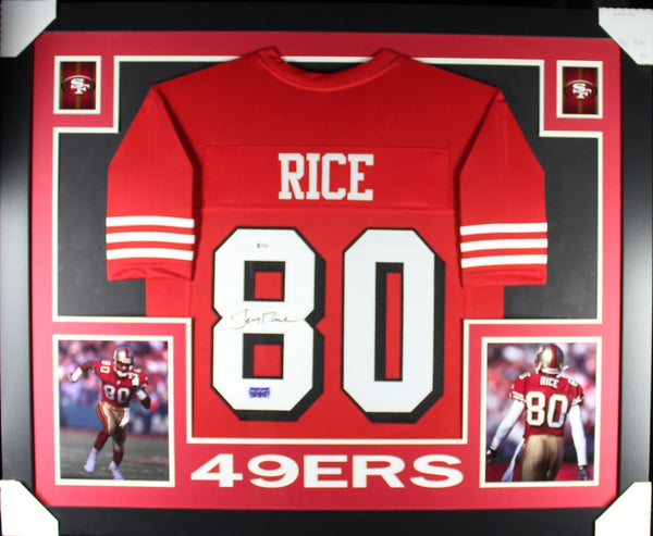 The number in the listing title is just an inventory sku for our records and is not the authentication number. The item pictured is a stock photo unless otherwise noted. This is a Pro Style Size XL Red Framed Jersey that was personally autographed by Jerry Rice. Includes a certificate of authenticity from Beckett Authentication Services (BAS) and Denver Autographs.