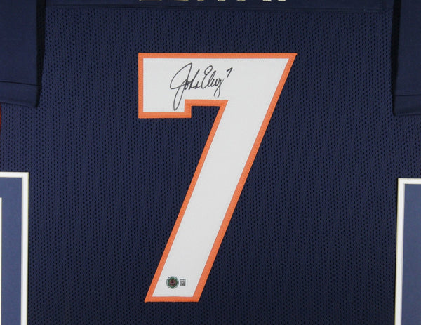 The number in the listing title is just an inventory sku for our records and is not the authentication number. The item pictured is a stock photo unless otherwise noted. This is a Pro Style Size XL Blue Framed Jersey that was personally autographed by John Elway. Includes a certificate of authenticity from Beckett Authentication Services (BAS) and Denver Autographs.