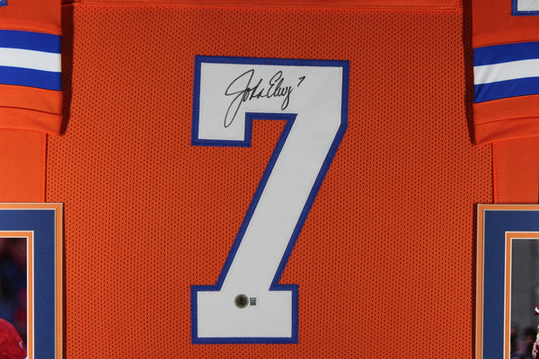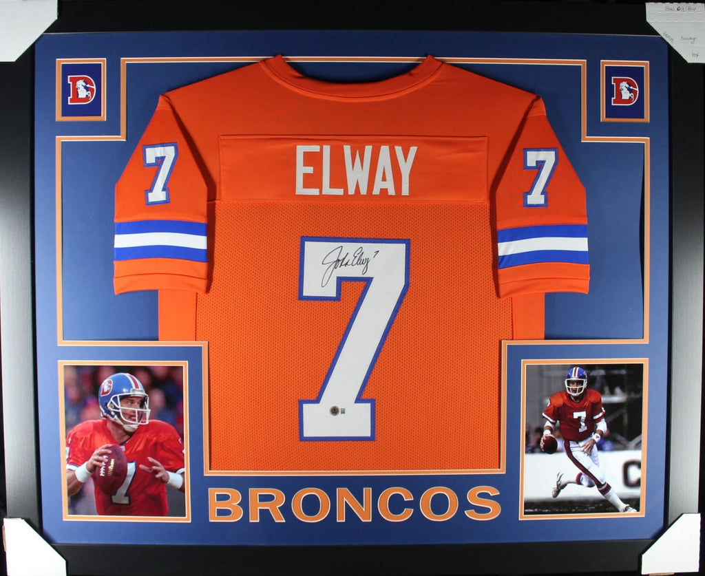The number in the listing title is just an inventory sku for our records and is not the authentication number. The item pictured is a stock photo unless otherwise noted. This is a Pro Style Size XL Orange Framed Jersey that was personally autographed by John Elway. Includes a certificate of authenticity from Beckett Authentication Services (BAS) and Denver Autographs.