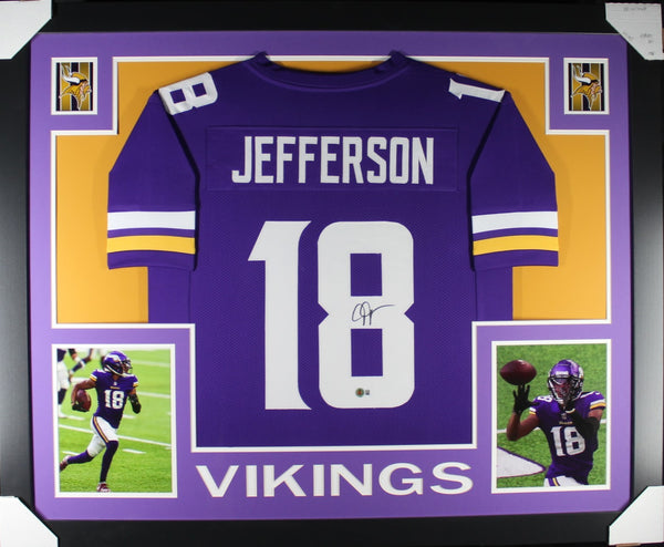Justin Jefferson Autographed Pro Style Purple XL Framed Jersey Beckett 51218