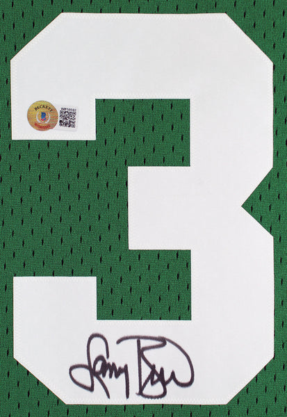 This Autographed 1985 Green Mitchell & Ness Hardwood Classics Swingman Framed Jersey has been Personally Signed by Larry Bird. This item is 100% Authentic to include a Certificate of Authenticity (COA) / hologram by Beckett Authentication Services. This is a BAS Witnessed Protection Program item which means a Beckett Authentication Service representative was present when this item was being signed. We conducted an autograph signing with Larry Bird where multiples of the same item were signed. While the photographs are representative of this item, the size, placement and strength of the signature may vary. Each item is hand signed, therefore, each autograph is unique. This item can be verified through BAS Witnessed. This item has been professionally framed to overall dimensions of approximately 32 x 37 inches. This is a X-Large sized Framed Jersey. This jersey will be framed to order, it will take 3-4 days from purchase date for it to ship.