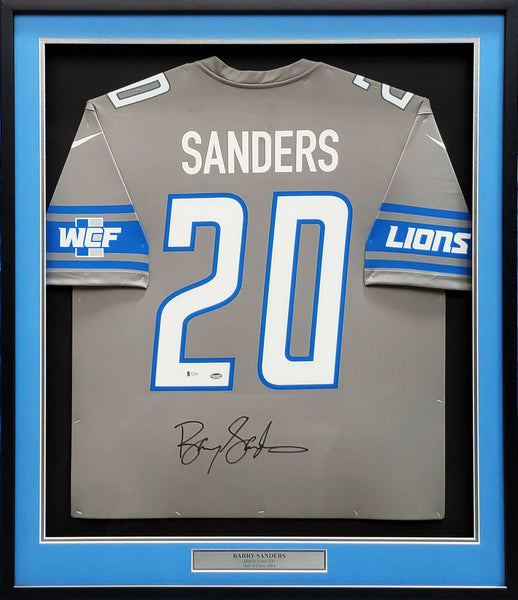 LIONS BARRY SANDERS AUTOGRAPHED FRAMED GRAY NIKE JERSEY BECKETT WITNESS 209459