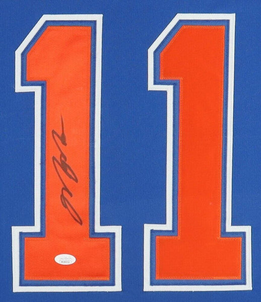 Custom frame measures approximately 35" x 43" in size and features a jersey that has been hand-signed by Mark Messier (Edmonton Oilers, New York Rangers, Vancouver Canucks, HOF).The autograph(s) includes an official James Spence Authentication (JSA) hologram for authenticity purposes.Authentication: JSA Hologram