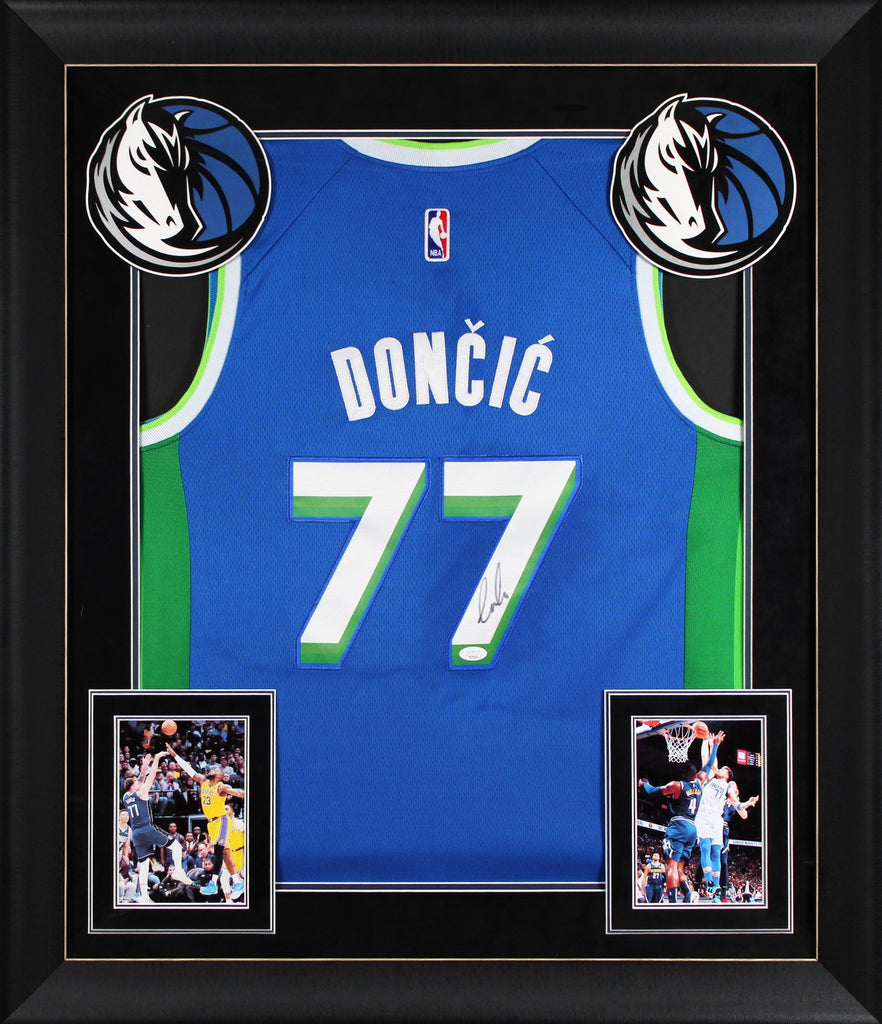 This Autographed Blue Nike Swingman Framed Jersey has been Personally Signed by Luka Doncic of the Dallas Mavericks. This item is 100% Authentic to include a Certificate of Authenticity (COA) / hologram by JSA. The authenticity can be verified on JSA website. This item has been professionally framed to overall dimensions of approximately 32 x 37 inches.