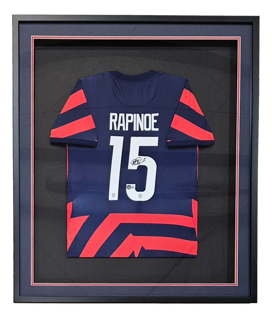 Featured is a Megan Rapinoe signed Nike USA women's soccer jersey. This jersey has been hand signed by Rapinoe and comes with the Beckett witnessed hologram and certificate of authenticity. This jersey is size Small. This jersey has been professionally framed and matted and is approximately 32x38. This jersey would make a great addition to any sports memorabilia collection! SPECIFICATIONS Autographed By: Megan Rapinoe Team: USA Sport: Soccer Authentication: Beckett Grading Services