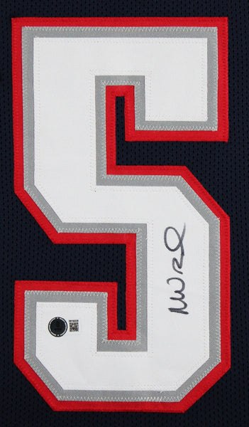 This Autographed Navy Pro Style Framed Jersey has been Personally Signed by Mike Vrabel of the New England Patriots. This item is 100% Authentic to include a hologram by Beckett Authentication Services. This item will come with an affixed Beckett Authentication Services (BAS) authentication sticker, which includes a scannable QR code to verify authenticity. Please note that Beckett no longer provides serial-numbered COA cards, and the attached BAS sticker will serve as the complete authentication for this item. This is a BAS Witnessed Protection Program item which means a Beckett Authentication Service representative was present when this item was being signed. We conducted an autograph signing with Mike Vrabel where multiples of the same item were signed. While the photographs are representative of this item, the size, placement and strength of the signature may vary. Each item is hand signed, therefore, each autograph is unique. This item can be verified through BAS Witnessed. This item has been professionally framed to overall dimensions of approximately 32 x 37 inches. This is a X-Large sized, non-branded, custom-stitched Framed Jersey. This jersey will be framed to order, it will take approximately 3-4 business days from purchase date for it to ship.