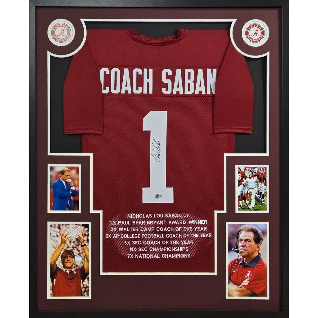 Nick Saban Stat Autographed Signed Framed Alabama 7X Jersey BECKETT