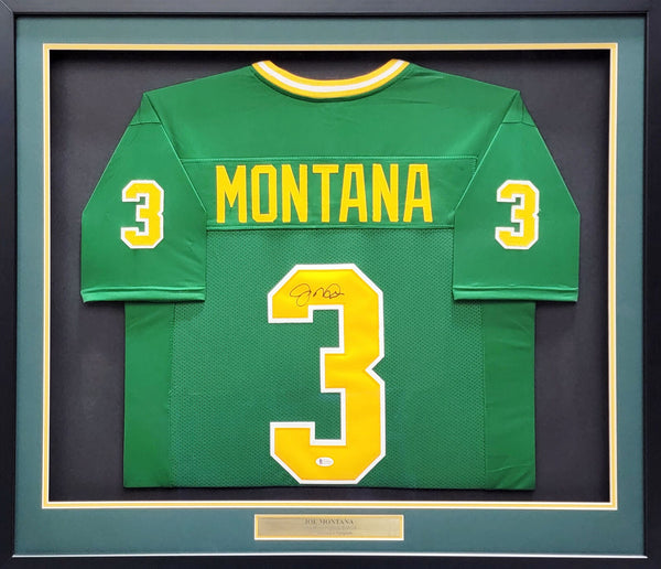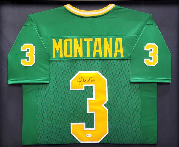 NOTRE DAME JOE MONTANA AUTOGRAPHED SIGNED FRAMED GREEN JERSEY BECKETT 200922