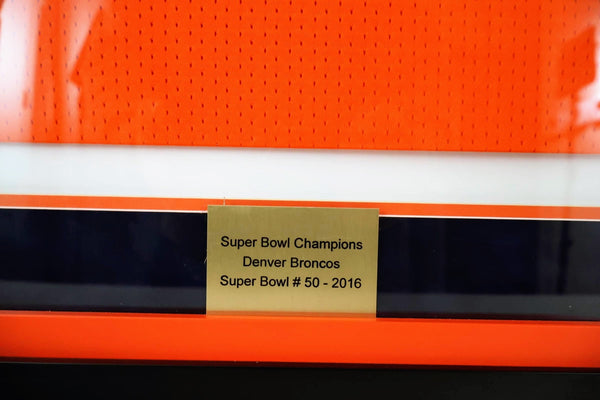 Own a piece of NFL history with our extraordinary Peyton Manning Signed Super Bowl 50 Jersey, featuring the autographs of 9 key figures from the championship-winning team! This incredible custom-mounted jersey comes adorned with signatures, including those of legends like Von Miller and Demarcus Ware. It's not just memorabilia; it's a tribute to the unforgettable Super Bowl 50 victory! **Key Features:**- **Peyton Manning's Signature:** The jersey is personally signed by the legendary Peyton Manning, commemorating his pivotal role in the Broncos' Super Bowl 50 triumph.- **9 Additional Signatures:** The jersey is also signed by key figures from the Super Bowl 50 team (CJ Anderson, Von Miller, Derek Wolfe, DeMarcus Ware, Aqib Talib, TJ Ward, Darian Stewart, Brandon McManus, and Emmanuel Sanders) creating a comprehensive tribute to the championship-winning roster.- **Custom Mounting:** Expertly mounted for an awe-inspiring presentation, this jersey display is a visually striking centerpiece for your sports memorabilia collection.- **Iconic 8x10 Photos:** Two 8x10 photos capture key moments from the Super Bowl 50 victory, signed by the players who made those moments unforgettable.- **Ready to Showcase:** This custom piece is ready to be showcased in your home, office, or fan cave, proudly displaying the collective brilliance of the Super Bowl 50 team. **Celebrate Super Bowl 50 Glory!**Relive the magic of Super Bowl 50 with this Peyton Manning Signed Jersey featuring autographs from 9 key players. It's an homage to an iconic moment in Broncos history. **Limited Edition - Act Now!**Seize this rare opportunity to own a comprehensive piece of Super Bowl history. Order your Peyton Manning Signed Super Bowl 50 Jersey with 9 additional signatures now and proudly showcase the brilliance of the Broncos' championship team! #PeytonManning #SuperBowl50 #DenverBroncos #SignedJersey #FootballMemorabilia #LimitedEdition