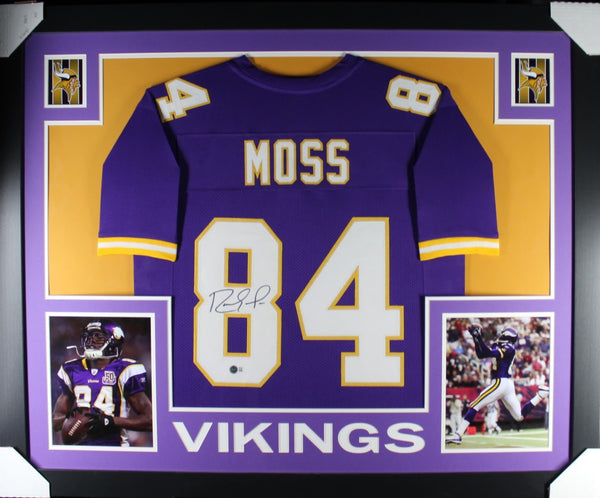 Randy Moss Autographed Pro Style Purple XL Framed Jersey 35x43 Beckett 51232