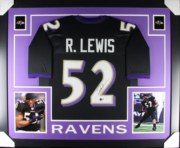 Ray Lewis Autographed/Signed Pro Style Black XL Framed Jersey Beckett 51226