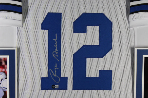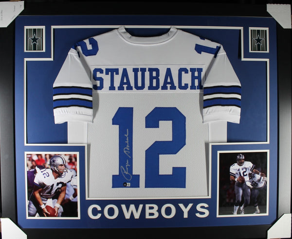 The number in the listing title is just an inventory sku for our records and is not the authentication number. The item pictured is a stock photo unless otherwise noted. This is a Pro Style Size XL White Framed Jersey that was personally autographed by Roger Staubach. Includes a certificate of authenticity from Beckett Authentication Services (BAS) and Denver Autographs.