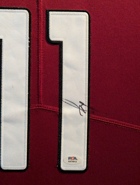 SUEDE FRAMED ARIZONA CARDINALS LARRY FITZGERALD AUTOGRAPHED SIGNED JERSEY PSA