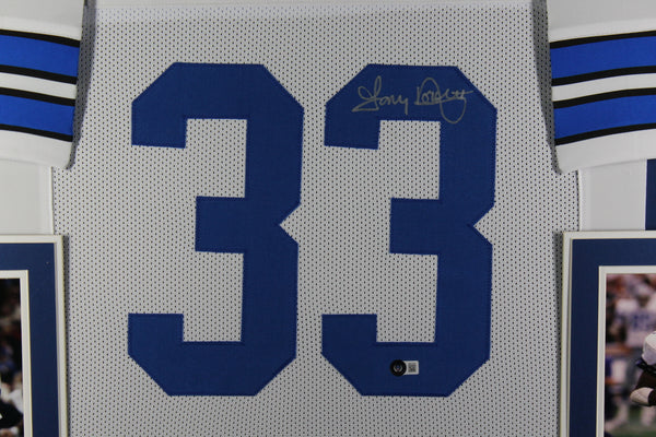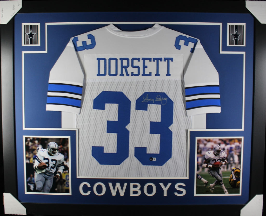 The number in the listing title is just an inventory sku for our records and is not the authentication number. The item pictured is the exact item you will receive please see photos for condition. This is a framed Pro Style white jersey with sewn on numbers that was personally autographed by Tony Dorsett. Includes a certificate of authenticity from Beckett Authentication Services (BAS) and Denver Autographs.The size of this jersey is 42"x32".FREE SHIPPING within the USA on orders over $10!
