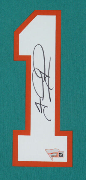 Custom frame measures approximately 36"x39" in size and features a jersey which has been hand-signed in black felt-tip pen by Tua Tagovailoa.The autograph includes an official Fanatics hologram for authenticity purposes.Authentication: Fanatics Hologram