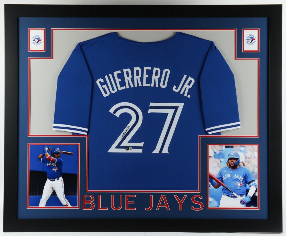 Vladimir Guerrero Jr Signed 35 x 43 Framed Blue Jersey Display Beckett Hologram