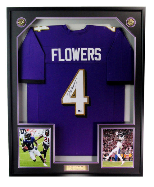 Zay Flowers Autographed Purple Football Jersey Ravens Framed Beckett 186184