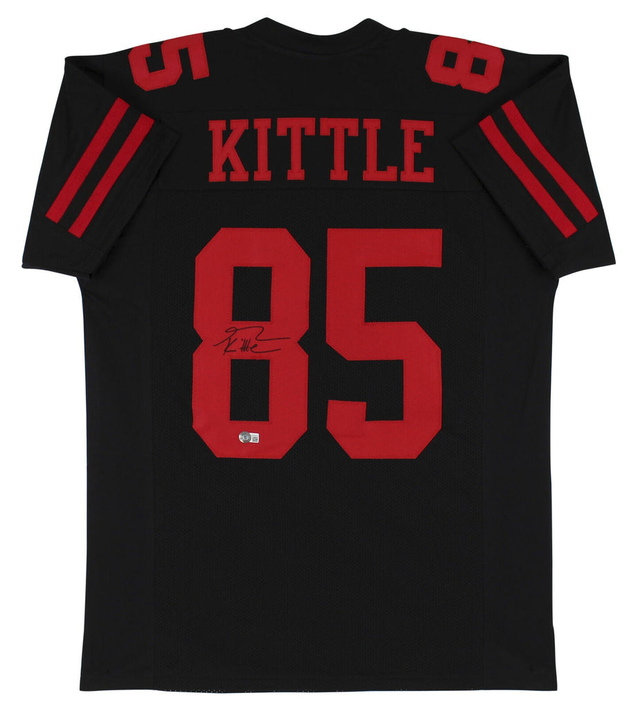 This Autographed w/ Red Numbers Black Pro Style Jersey has been Personally Signed by George Kittle of the San Francisco 49ers. This item is 100% Authentic to include a hologram by Beckett Authentication Services. This item may come with the new Beckett Authentication hologram that has a scannable QR code rather than the traditional COA. If you would like to have a COA, you are welcome to reach out to Beckett for a printed certification once you receive your item. This is a BAS Witnessed Protection Program item which means a Beckett Authentication Service representative was present when this item was being signed. This is a stock item. We conducted an autograph signing with George Kittle and we have several of these available. The one you will receive will be of equal quality to the one pictured. This item can be verified through BAS Witnessed. This is a X-Large sized Jersey.