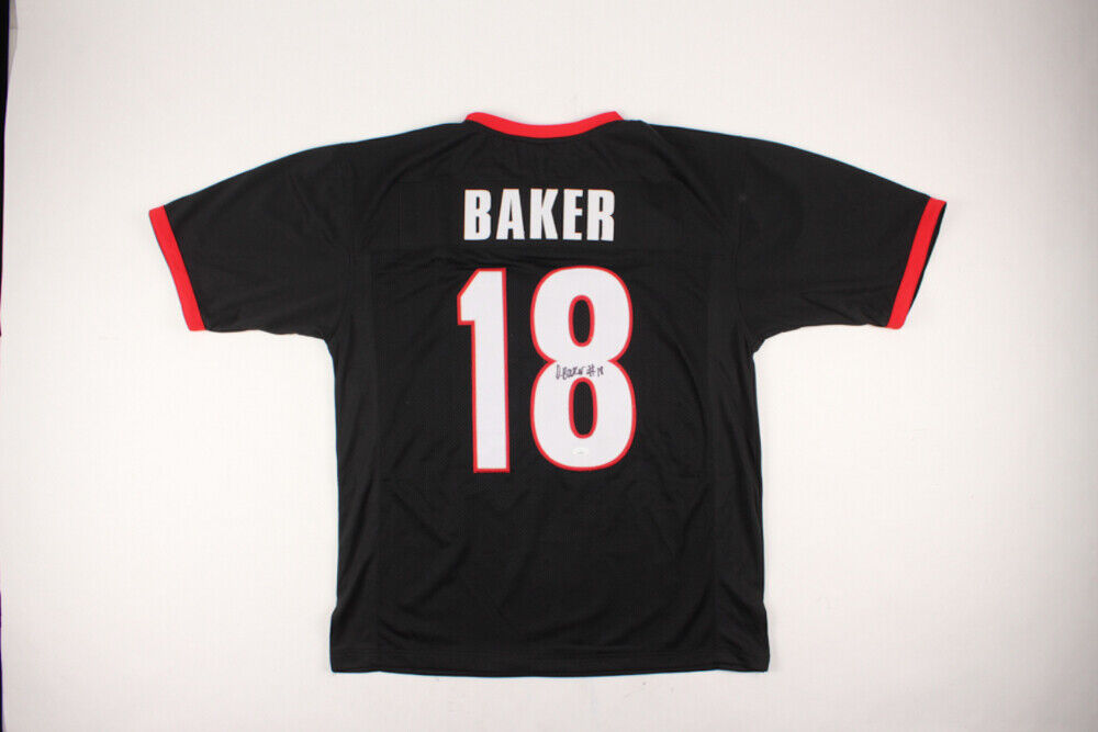 Custom on-field style jersey. Everything is sewn on, size XL. Hand-signed in black felt-tip pen by Deandre Baker. Please see photos for details regarding the condition of the jersey. The autograph(s) includes an official James Spence Authentication (JSA) "Signature Debut" hologram and COA. "Signature Debut" is the autographed memorabilia equivalent to a rookie card. The JSA definition of a "Signature Debut" is as follows: "Any item that is autographed and received by JSA prior to the last game of the signer's official rookie season.Authentication: JSA Signature Debut COA