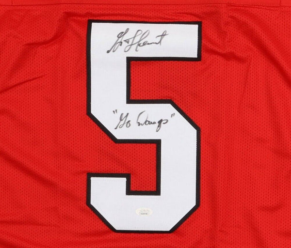 Custom on-field style jersey. Everything is sewn on, size XL. Has been hand-signed and inscribed by Garrison Hearst.The lot / autograph(s) includes an official James Spence Authentication (JSA) hologram and matching COA for authenticity purposes. The signing of this item was witnessed by JSA.Authentication: JSA COA