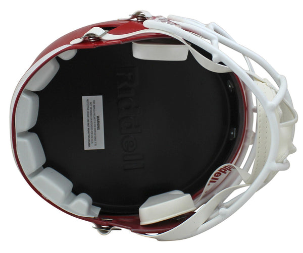 This Autographed Full Size Speed Rep Helmet has been Personally Signed by Nick Chubb of the Georgia Bulldogs. This item is 100% Authentic to include a hologram by Beckett Authentication Services. This item will come with the new Beckett Authentication hologram that has a scannable QR code rather than the traditional COA. If you would like to have a COA, you are welcome to reach out to Beckett for a printed certification once you receive your item. This is a BAS Witnessed Protection Program item which means a Beckett Authentication Service representative was present when this item was being signed. We conducted an autograph signing with Nick Chubb where multiples of the same item were signed. While the photographs are representative of this item, the size, placement and strength of the signature may vary. Each item is hand signed, therefore, each autograph is unique. This item can be verified through BAS Witnessed.
