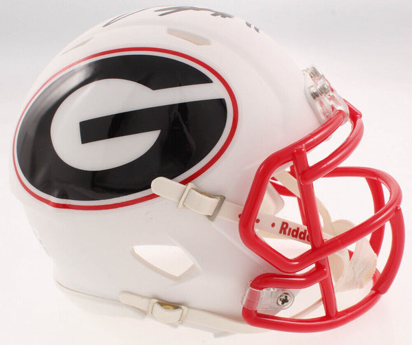 Riddell Georgia Bulldogs AMP Alternate Speed mini helmet has been hand-signed in black felt-tip pen by Jake Fromm.The lot / autograph(s) includes an official Beckett Authentication Services serially-numbered hologram and matching COA for authenticity purposes. The signing of this item was witnessed by Beckett.Authentication: Beckett COA