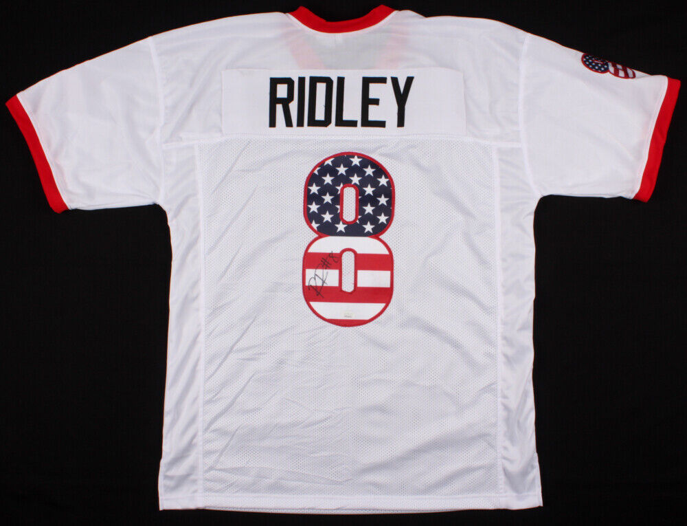 Custom on-field style jersey. Everything is sewn on, size XL. Hand-signed in black felt-tip pen by Riley Ridley. The lot / autograph(s) includes an official James Spence Authentication (JSA) hologram and matching COA for authenticity purposes. The signing of this item was witnessed by JSA.Authentication: JSA COA