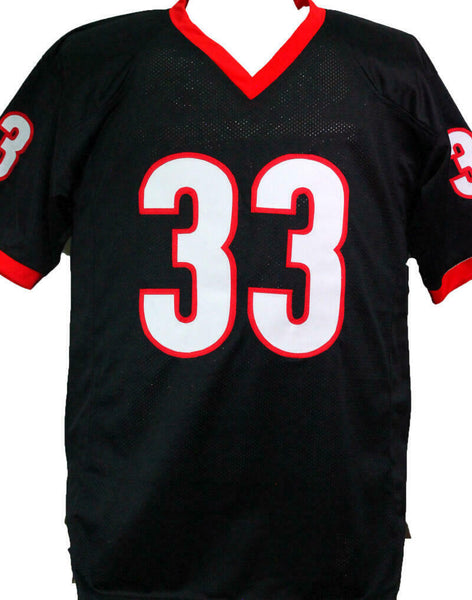 Terrell Davis Autographed Black College Style Jersey- Beckett W *Black THIS IS NOT AN NCAA JERSEY. THIS HAS NO TAGS, NO LOGOS, NO EMBLEMS. This is a Terrell Davis of the Georgia Bulldogs hand autographed custom made (Non Name Brand) authentic style (Stitched Letters and Numbers) jersey. This item has a Beckett Witnessed Authentication, which comes with a numbered and a matching Certificate of Authenticity. You can view this item on the Beckett website, it shows when and where the item was signed. It was signed either at a public autograph appearance or a private signing. This is a stock photo of the item. Although you may not receive this exact item, the item you receive is virtually identical, brand new, and in great shape. Jersey size is XL.